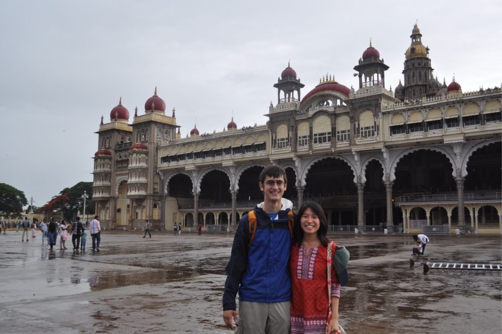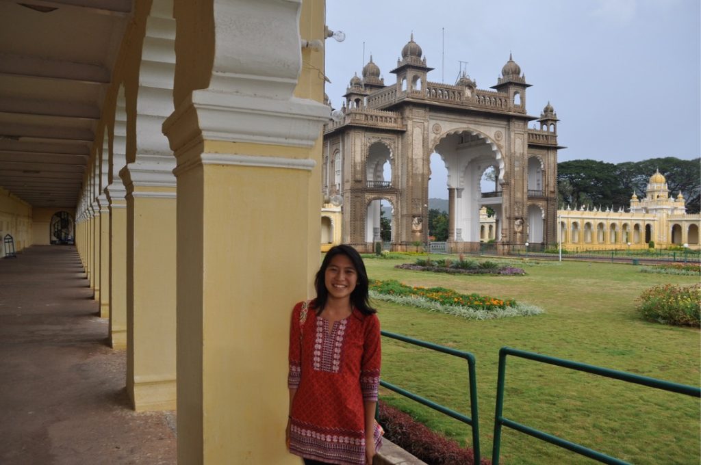 The trip there was pretty long. We took two local buses before we reached the station where we could take a bus to Mysore. In India, there are options for air conditioned as well as non-air conditioned (therefore cheaper and not as comfortable buses). We took the air conditioned one and it turned out to be a really comfy bus with seats that reclined almost all the way. I, therefore, took a very nice three-hour long nap on the way there 🙂