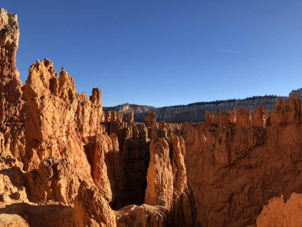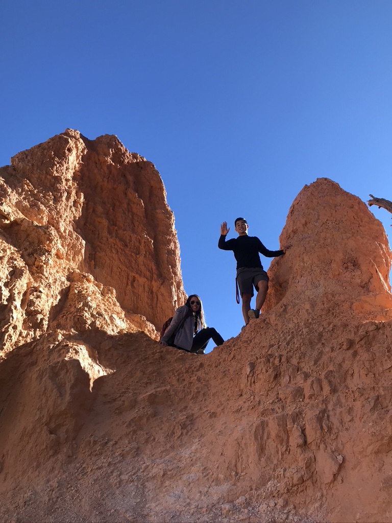 There’s a pretty steep section called “Wall Street” that’s basically a set of really steep switchbacks that takes you down into the hoodoos, and last time Dora, Jtran and I did it in the afternoon almost around sunset and the light hitting the hoodoos made them look super cool.