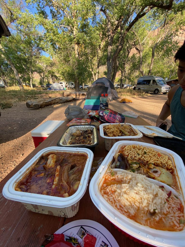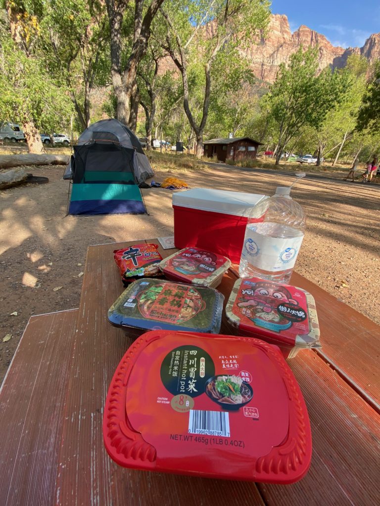 Our greatest discovery of this trip were these instant hot pot kits that we got at 99 Ranch in Las Vegas. You literally just add water and a chemical reaction set off in lower compartment of these containers heats up the hot pot. Our campsite smelled like mala spice for quite a bit afterwards, but it was a delicious dinner.
