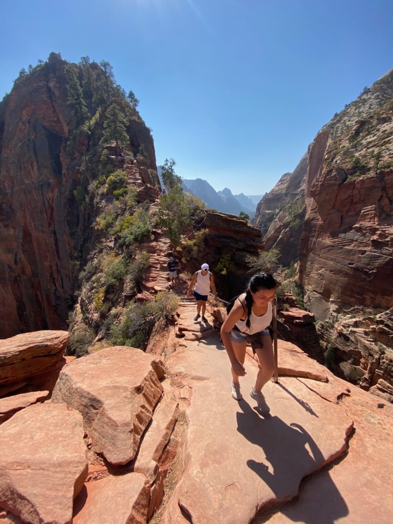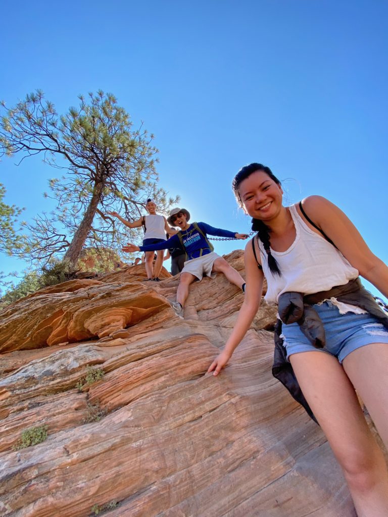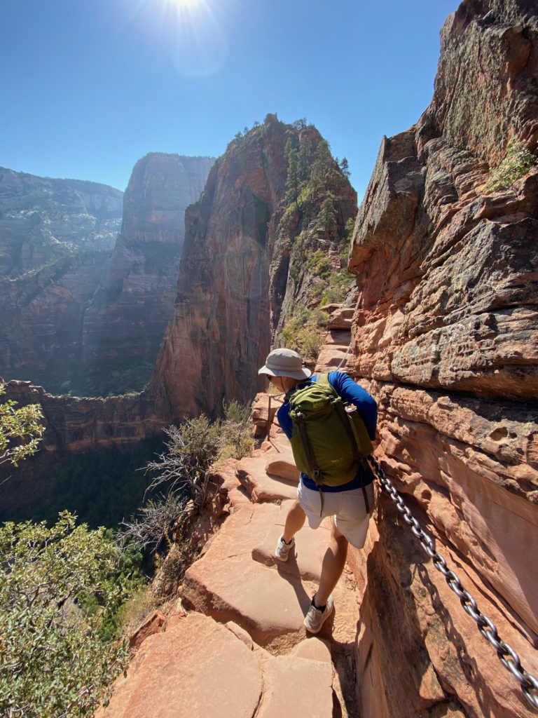 Angel’s Landing is one of the two signature hikes in Zion, and it’s really no joke. The entire first half is a series of pretty steep switchbacks, followed by a mentally terrifying section up a narrow path where you have to hold on to a chain all the way to the top. Willy was on his butt for many parts of the second half because it was just so scary to stand up.