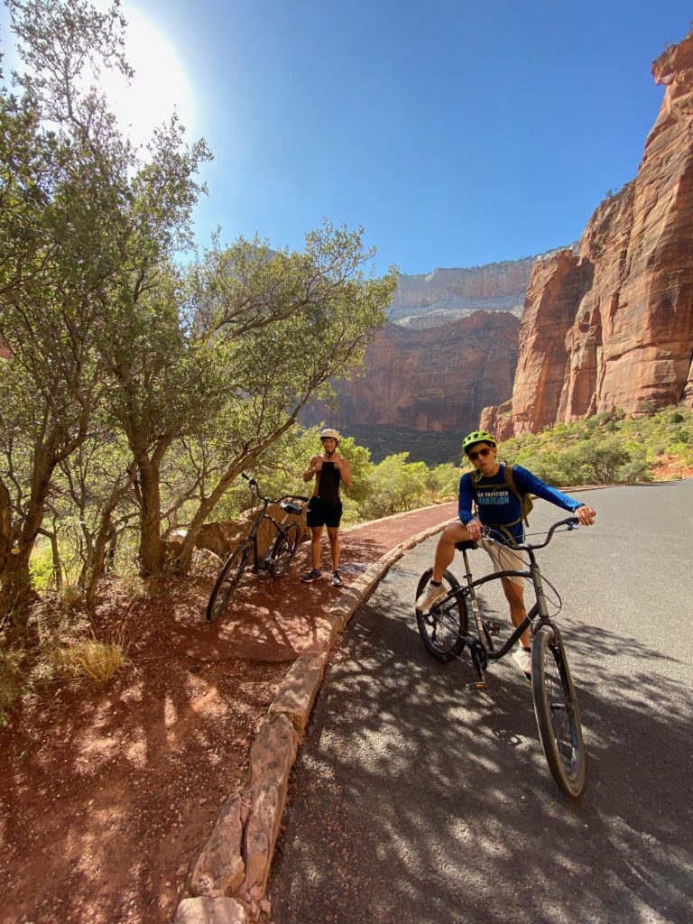 Bike rentals: we ended up getting up at 5am to get bikes from Zion Outfitter which is first come first serve (they were sold out by 6:30am), but there are some other bike shops in Springdale that might be a bit further out and offer online reservations.