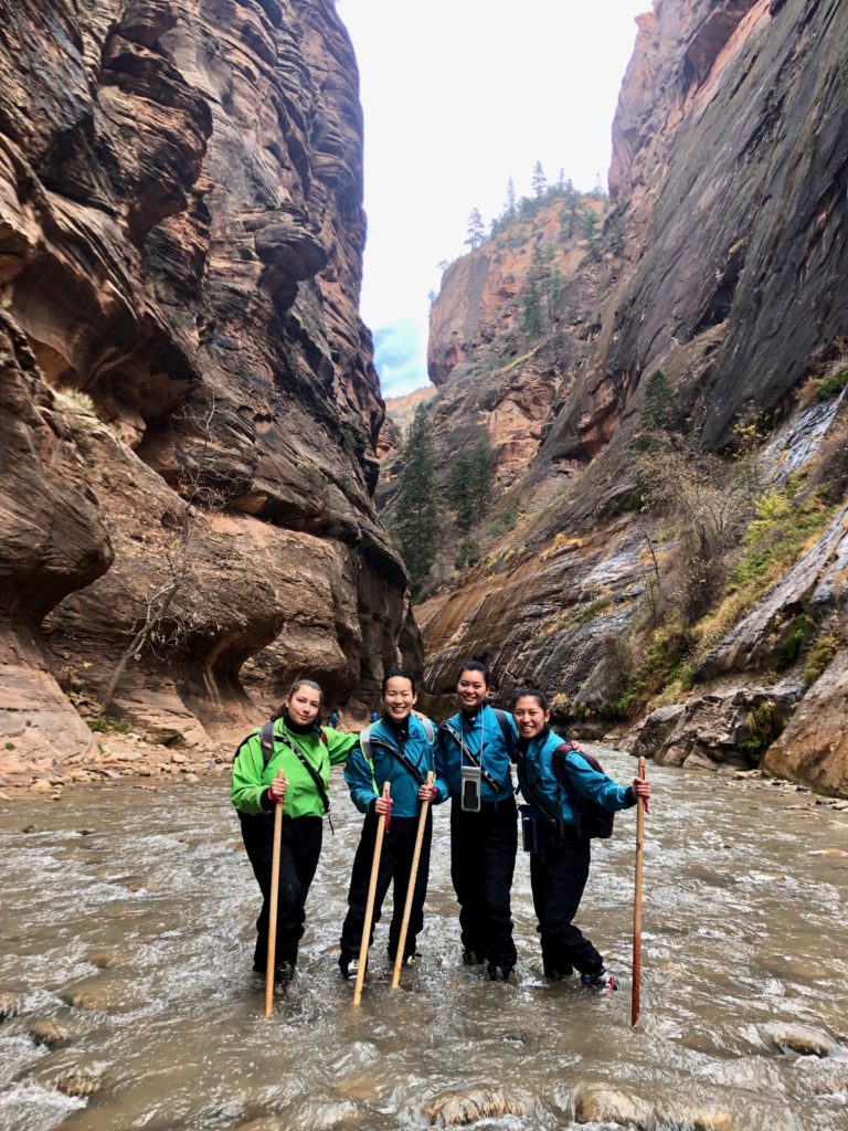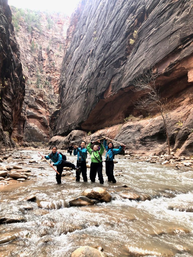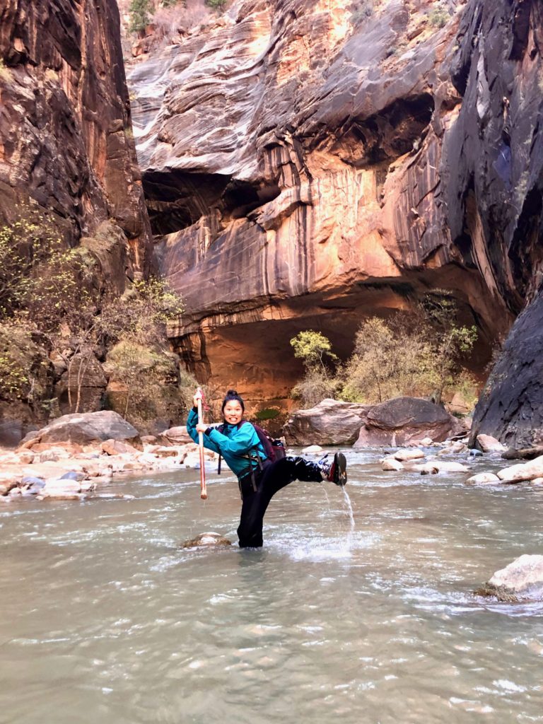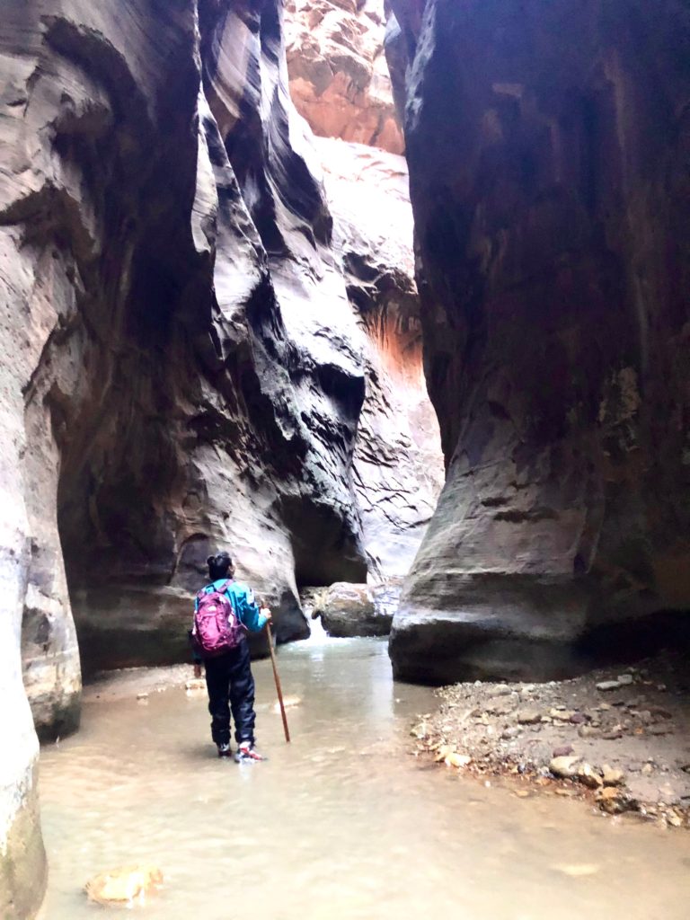In 2018, we went in November, so the water was pretty cold. We rented special wet suits, boots, and hiking sticks from a rental place in Springdale right outside the park and even with the cold temperatures, we had an amazing time!